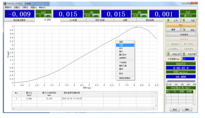 8、打印功能:自动打印报表,(中文)打印(最大力量平均值断点比例日期)
